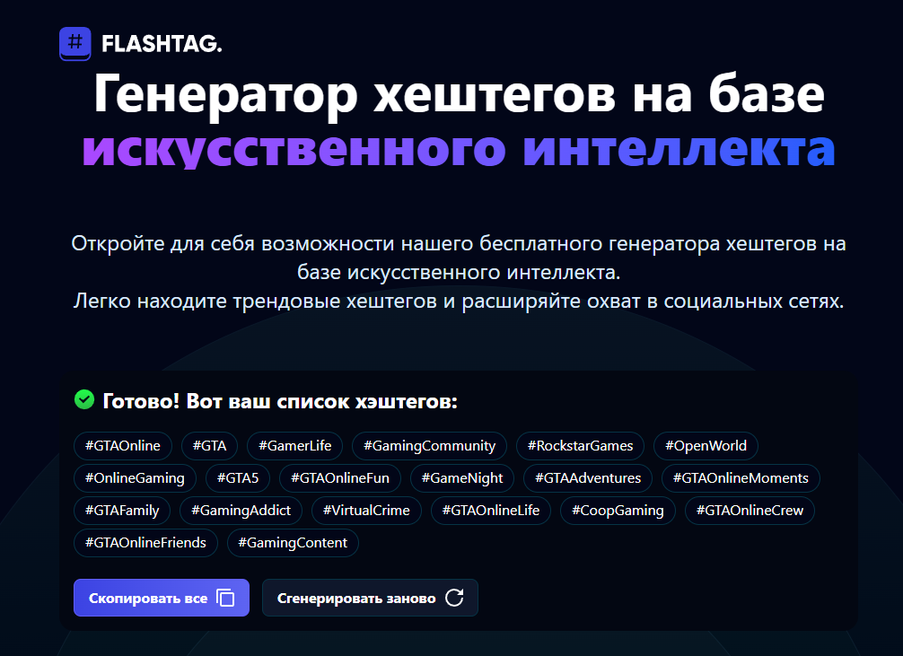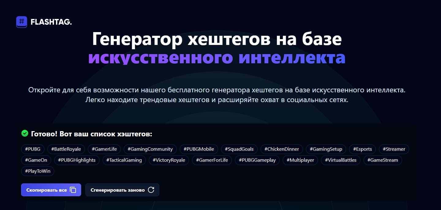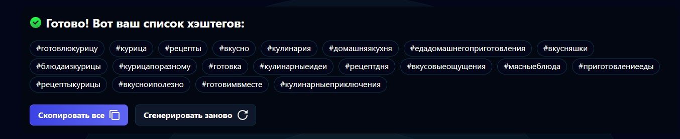 Пользуюсь флештегом уже пару недель и очень довольна! Сервис реально помогает подбирать топовые хештеги для моих постов, и охват увеличился кратно. Не ожидала, что бесплатный генератор окажется настолько эффективным