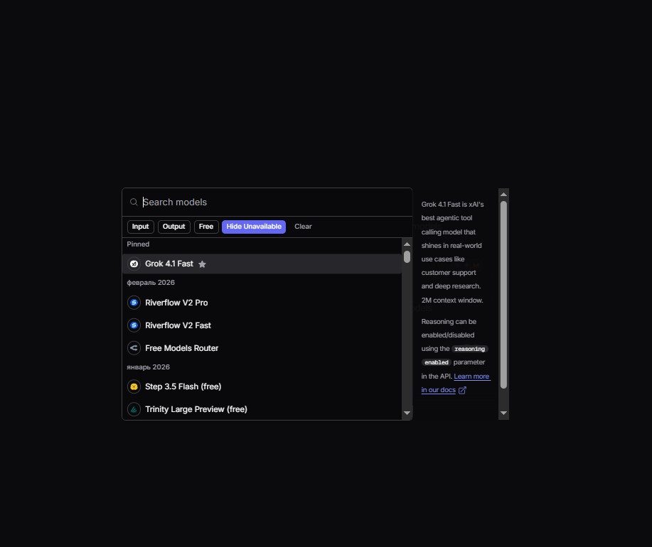 OpenRouter представляет собой унифицированный API-агрегатор для больших языковых моделей (LLM), объединяющий более 300 моделей от 60+ ведущих провайдеров, включая Anthropic (Claude Opus), OpenAI, Google (Gemini), Meta (Llama), Mistral, DeepSeek и другие. Сервис обеспечивает единый доступ ко всем моделям через стандартный OpenAI-совместимый интерфейс, без необходимости регистрации на множестве платформ. Пользователи платят только за использованные токены кредитами (без подписок), получают высокую доступность с автоматическим переключением провайдеров и минимальную задержку благодаря edge-инференсу. Подходит для разработчиков, приложений и чат-ботов; обслуживает 5+ млн пользователей и 25 трлн токенов в месяц.